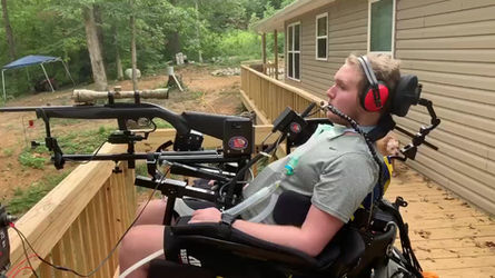 American Mobility Project is proud to have been a part of helping Jefferey to be able to hunt again. AMP provided adaptive equipment, so Jefferey can hunt using a sip and puff system that enables him to shoot.. In January, 2021, American Mobility Project provided Jefferey with an Action Track Stander. This equipment allows Jefferey to get out on unapproved terrain and into the woods, improving his hunting experience!